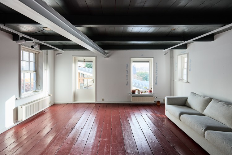 Kunsthuis Syb is centrally located in a monumental building on the main street of the village of Beetsterzwaag. The ground floor is, as it were, the public interface of the organization. The front part hosts artistic presentations. The second and third floors consist of a kitchen, a large living room and an apartment for artists who conduct research through residencies. This homely atmosphere remains present in the working methodology.
