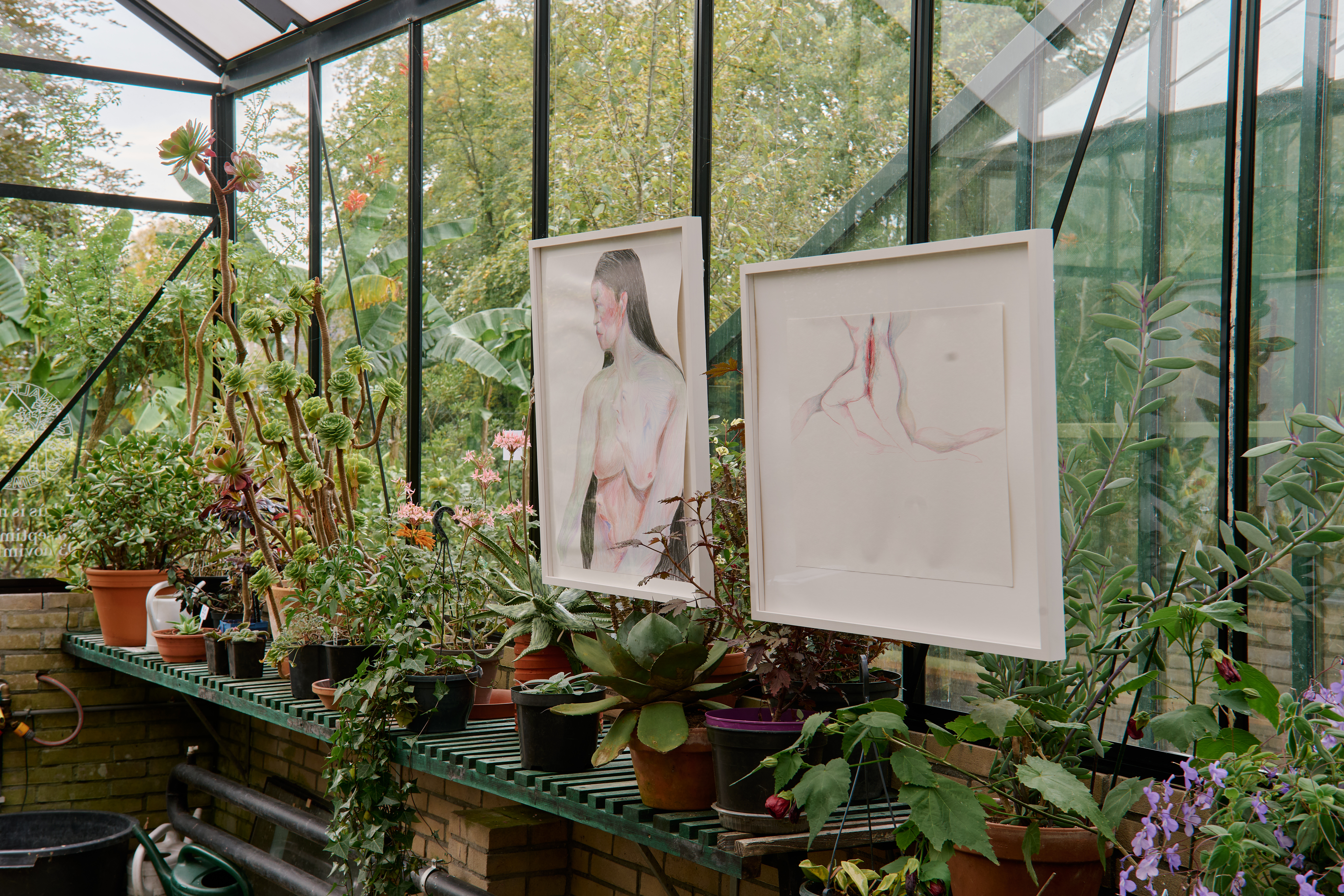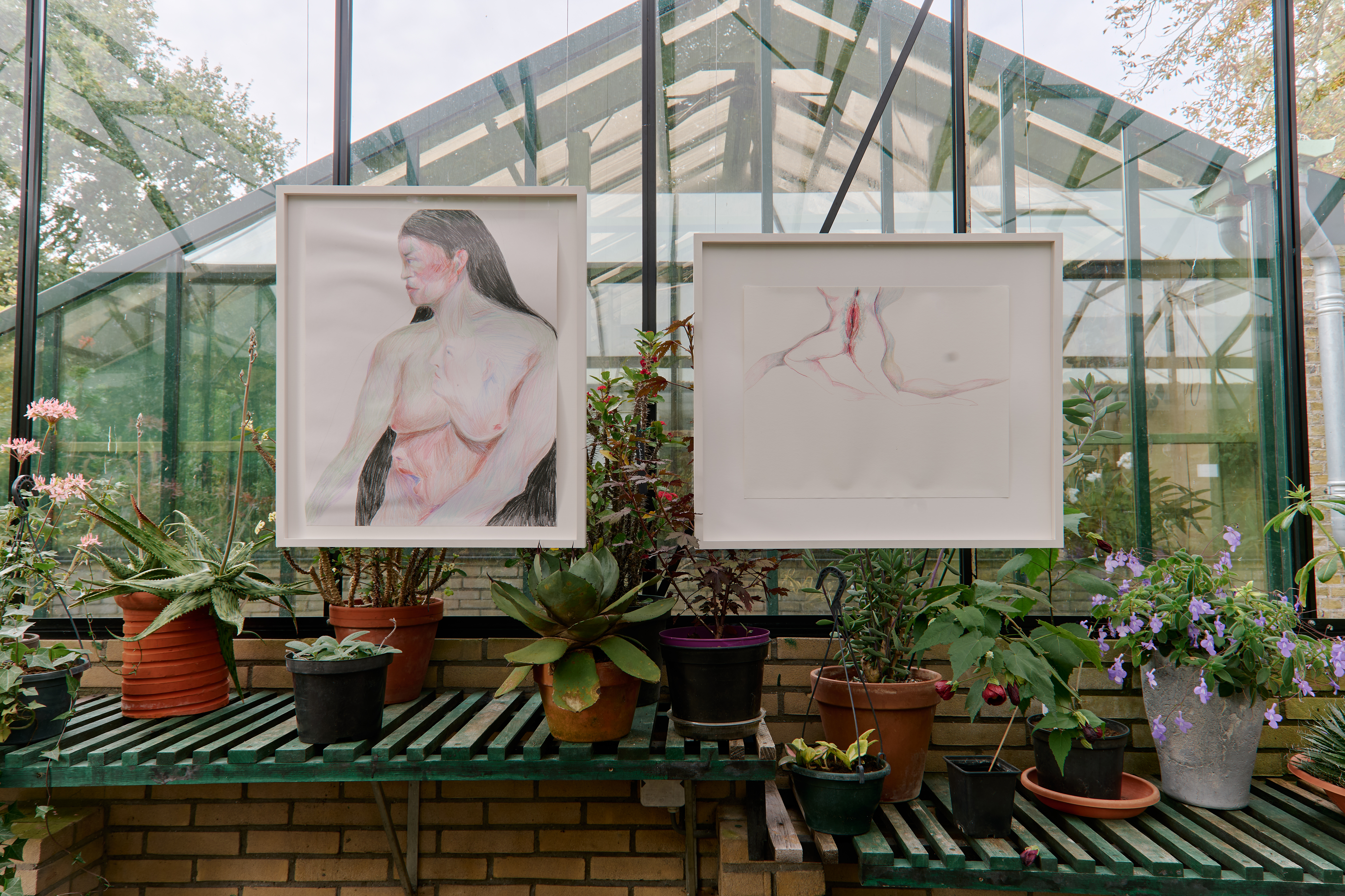 The drawings of Selma Selman from her series Superpositional Intersectionalism depict female characters that recall mythical and fictional creatures. At times autobiographical, at times filled with art historical references the drawings offer an insight into female genealogy. The artist started making drawings early in life during high school in the village of Bihac in Bosnia where she grew up. The drawings constitute an important body of work that accompanies and centers her practice. They are at once portraits of future creatures, remnants of forgotten female legacies as well as sketches for future paintings, films and performances.