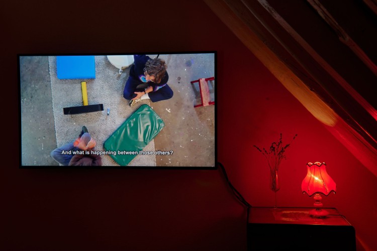 In his video Je vergeet jezelf nog eens, Steven Jouwersma attempts to cross barriers that exist amidst neurologically divergent perceptions of being in the world. Steven explores the relations between different concepts and experiences of the Self, ranging from Zen Buddhism to activities performed by his mother. Adjacent to this, Steven has researched so-called snoezel rooms. The verb “snoezelen” is a combination of the Dutch verbs “snuffelen,” to seek and explore, and “doezelen,” to relax. Snoezel spaces are specifically designed for this practice, and are often found in care institutions and schools for neurodiverse people. These ideas combined, examine the potentiality for a more flexible relation between the Self and the outside world.
