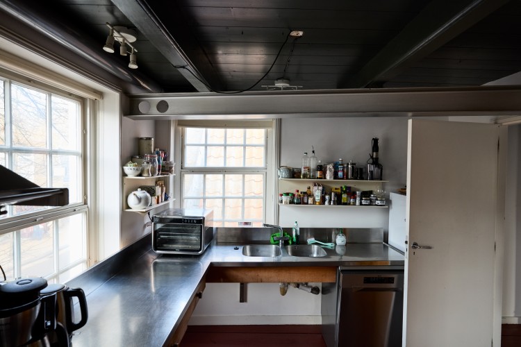 Kunsthuis Syb is centrally located in a monumental building on the main street of the village of Beetsterzwaag. The ground floor is, as it were, the public interface of the organization. The front part hosts artistic presentations. The second and third floors consist of a kitchen, a large living room and an apartment for artists who conduct research through residencies. This homely atmosphere remains present in the working methodology.