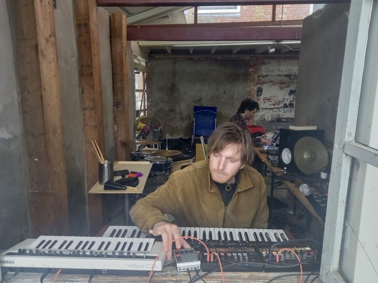 The residency at Syb took the form of a literal and figurative field trip in which different people and disciplines come together. Using the materials gathered in this context, the artists transformed them into collages of music, texts, paintings, cheeses and champagne.