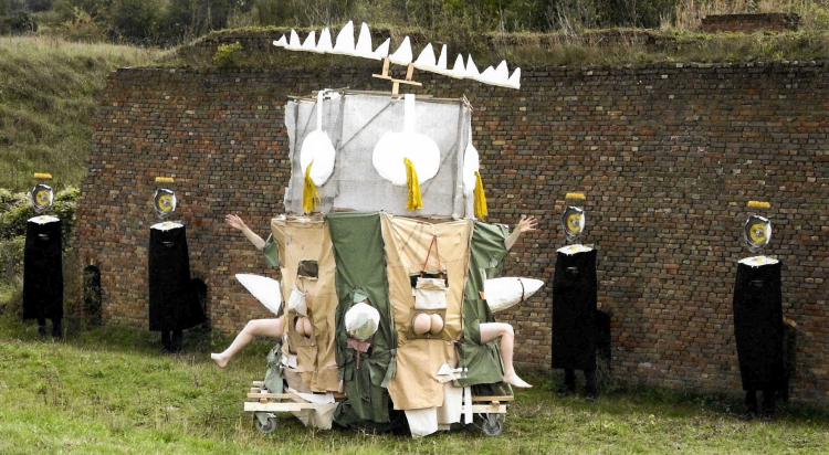 Wessel Verrijt (1992, Lierop NL) creates sculptures, architectural vehicles, tactile mobiles and vibrant characters. They are both robust and fragile, as well as chaotic and orderly. They appear to be living entities and suggest a ritual or a procession that came to a halt. The sculptures come to life in performances. As such, he explores the idea of ‘living matter’, when body and matter merge and matter takes on human traits and emotions.