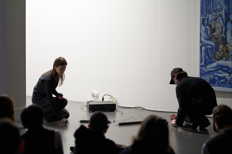 18:45 Performances by Charlène Dannancier, Ahmad Mallah and Cecilie Fang, in collaboration with Roc Montariol, a sound intervention by Karin Iturralde Nurnberg, and a short screening by Okki Poortvliet.