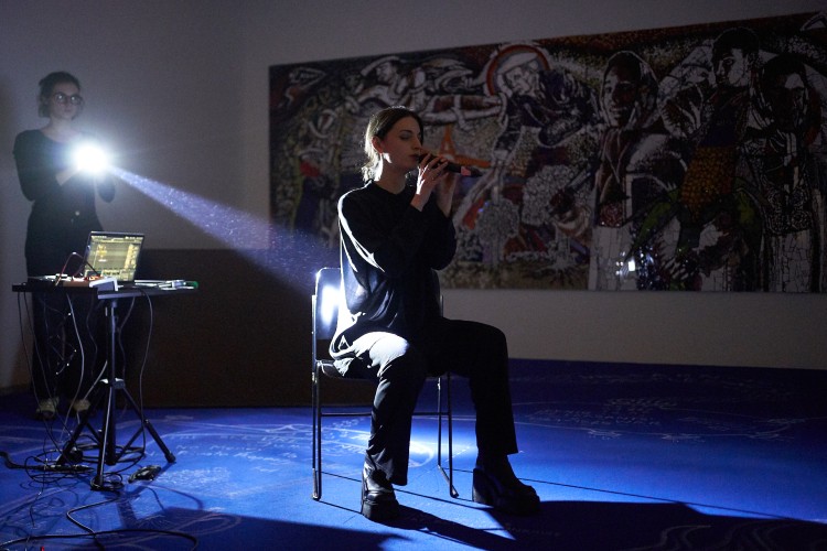 Charlène Dannancier performs a live activation of her sound installation Excess, integrating text drawn from the Excess publication with performative elements of her performance Someone Could Actually Die Here Tonight, currently on view at Kunsthuis Syb.