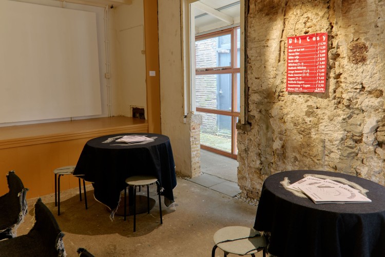 De Bult is a temporary bar installed at Kunsthuis Syb for the duration of the exhibition. The bar takes its name from the nick-name of Jurrien Christiaens from Leeuwarden who was executed in 1730 under the charge of sodomy. In addition to this, Christiaens or ‘De Bult’ operated a ‘lolhuis’ in his home, a clandestine sex space frequented by men in the 18th century. During the same period, the Dutch sea dikes were threatened by shipworms. Hell-and-damnation preachers associated this with the immoral crimes of homosexuals, or sodomites, uncovered in Utrecht in 1730. In Groningen, a special day of prayer was proposed against the shipworm and against sodomy. De Bult is a continuation of a long-term project initiated by the Publik Universal Frxnd with Philipp Gufler on the disappearance of queer social space. Its previous manifestations included “Moby Dyke” at Florida Lothringer 13, Munich and “Bei Cosy” at Rongwrong, Amsterdam.